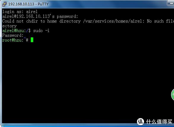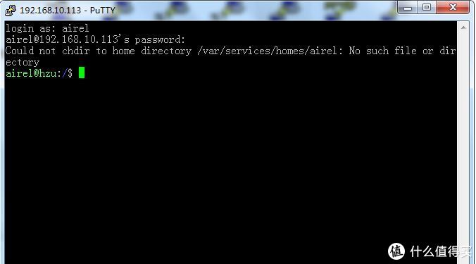 第二:使用PUTTY登录NAS主机,输入管理员名和密码(这个只有你自己知道,输入密码不会显示,输完按回车即可)。