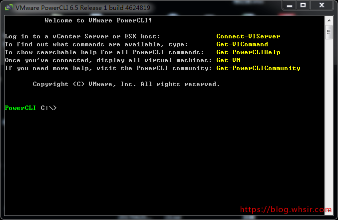 Set-ExecutionPolicy Unrestricted然后重新启动VMware PowerCLI会有个默认的设置,直接回车即可,第二次启动后可以看到如下画面,此时VMware PowerCLI安装完成
