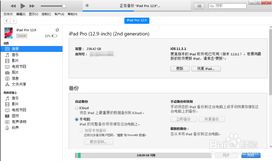四、进入iPad的备份过程,文件多,备份的时间就长,静静等待即可