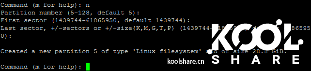提示设置分区编号,上面已经有分区1-4了,这里默认是5,直接回车。