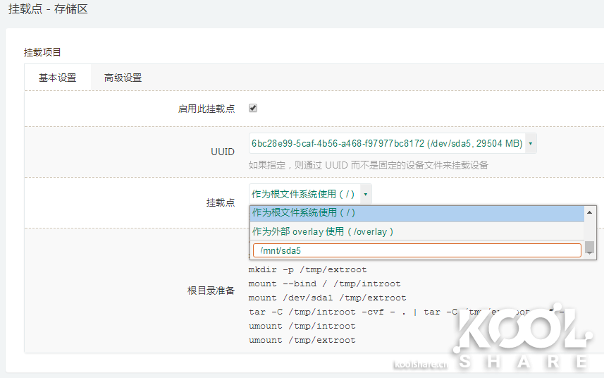 登录路由器:系统 > 挂载点> 添加