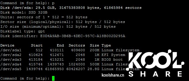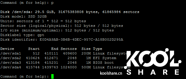 打印分区表(命令)p