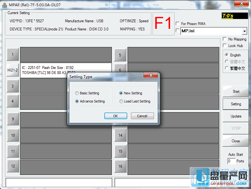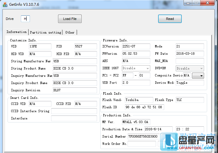 可以看到这次量产的是东芝闪存颗粒,之前的是海力士的。具体量产教程如下: