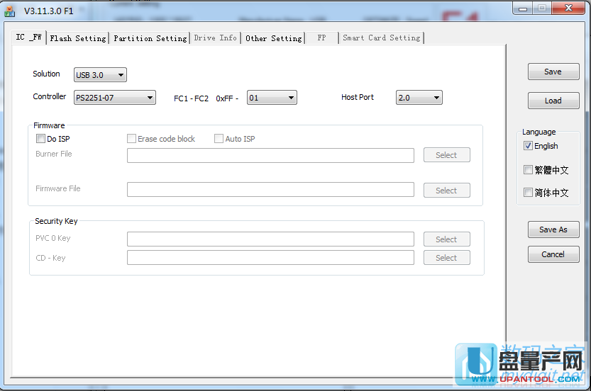 5.按下图设置,USB接口类型选3.0,主控型号选择之前getinfo检测出的PS2251-07,host port这里选2.0(插在USB2.0选2.0 插3.0选3.0)