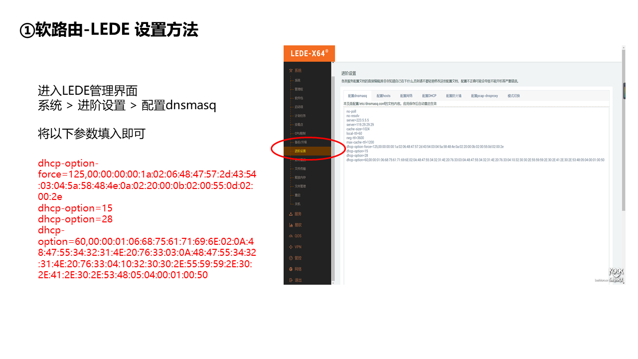 dhcp-option-force=125,00:00:00:00:1a:02:06:48:47:57:2d:43:54:03:04:5a:58:48:4e:0a:02:20:00:0b:02:00:55:0d:02:00:2e