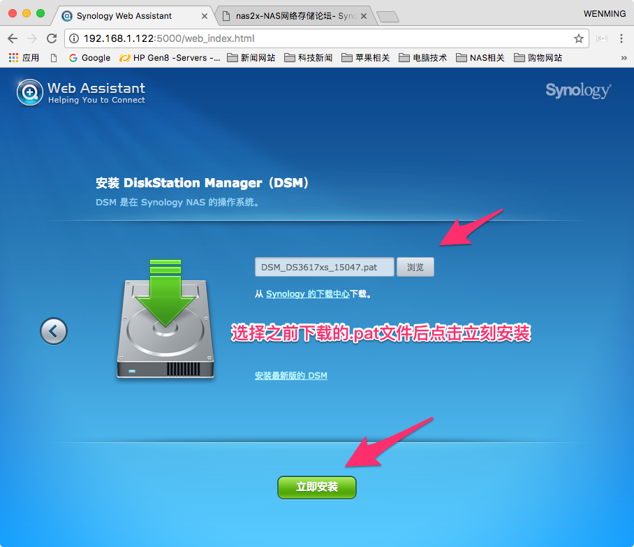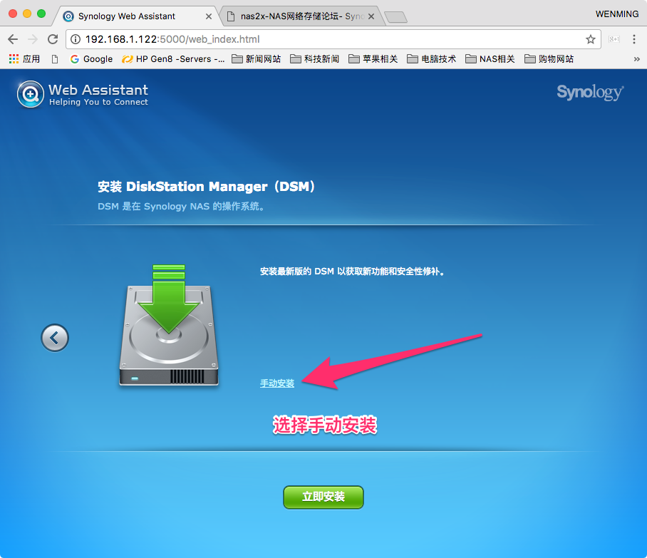 4,根据提示继续,点击手动安装后选择之前下载的pat文件,然后再点击立即安装。