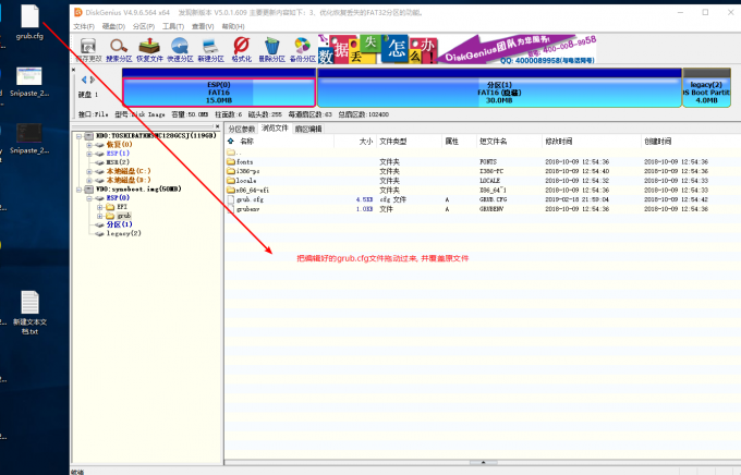 注意:vid和pid的0x不要修改,只需要修改后面的4位再把已经编辑好的grub.cfg文件拖动到DiskGenius刚刚的位置, 并且替换之前的文件.