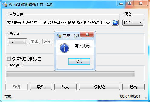 然后记得关闭DiskGenius制作引导U盘运行Win32 Disk Imager磁盘映像工具,如下图所示。