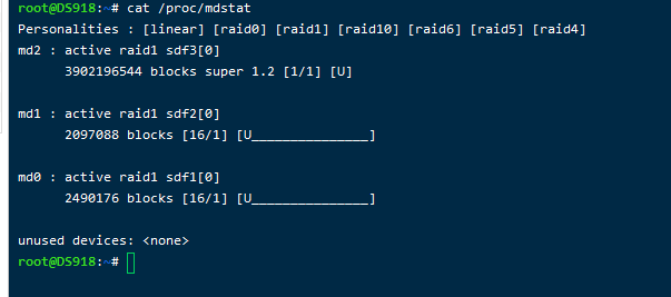 5、查看当前储存池情况,记一下最后一个存储池的数字(比如我的是md2)