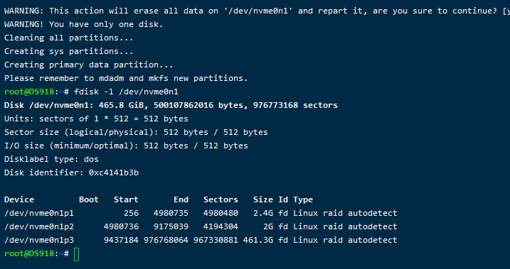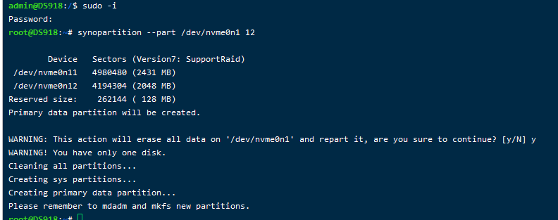 synopartition --part /dev/nvme0n1 12在第一块NVME的上创建分区